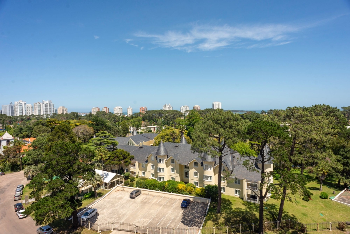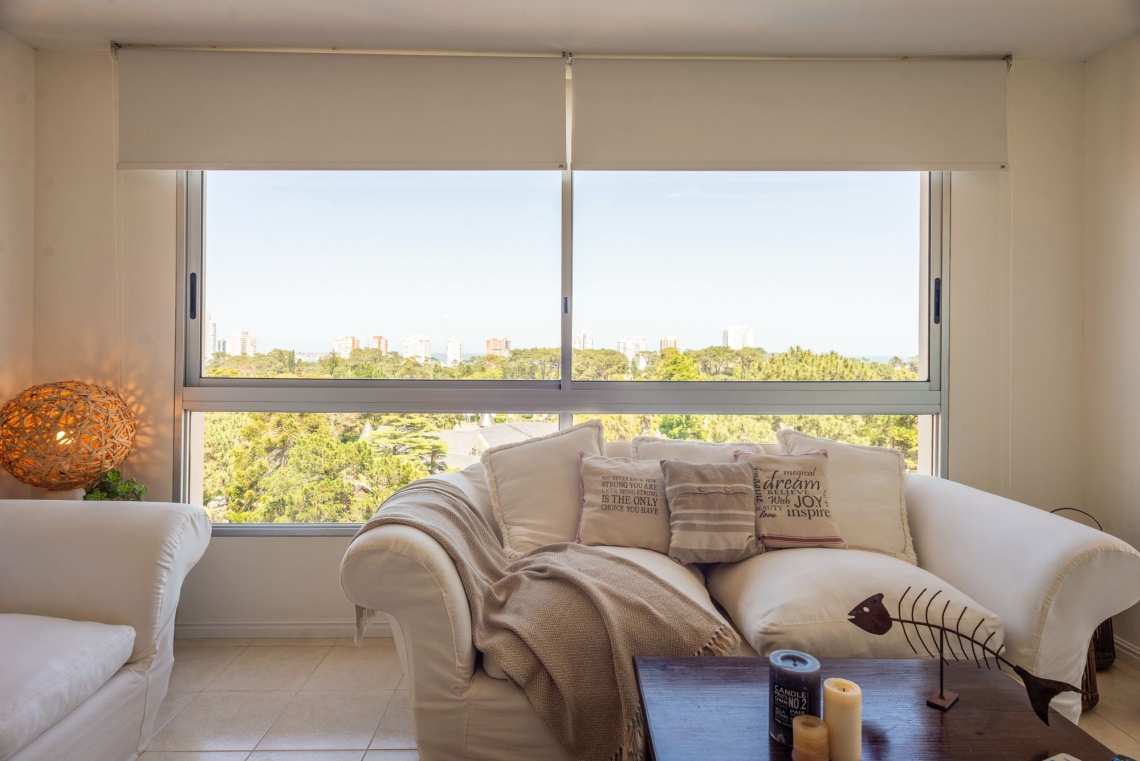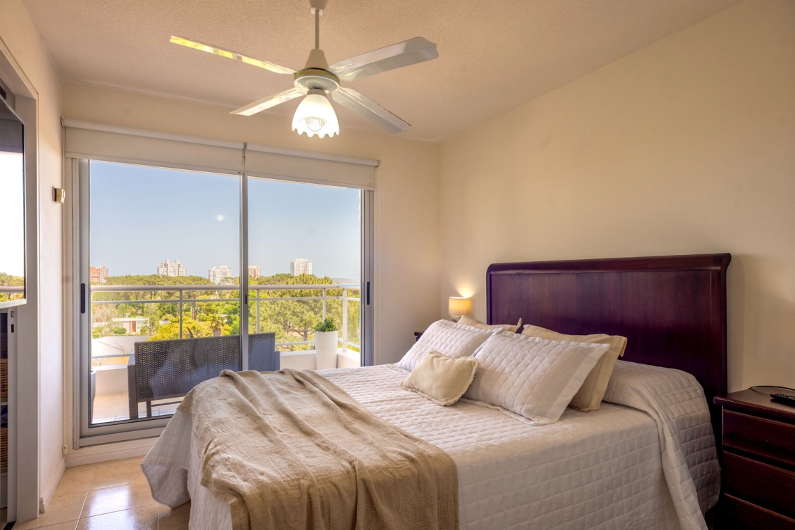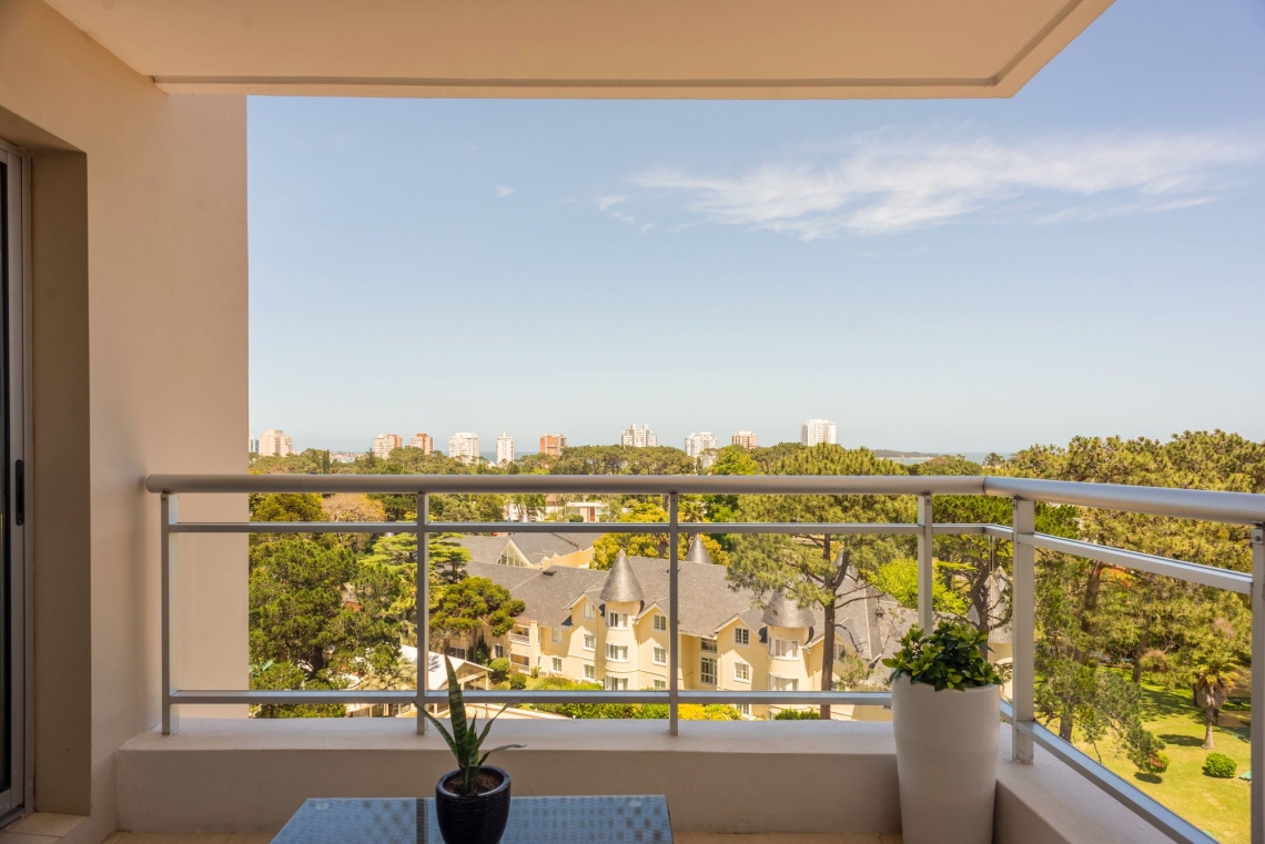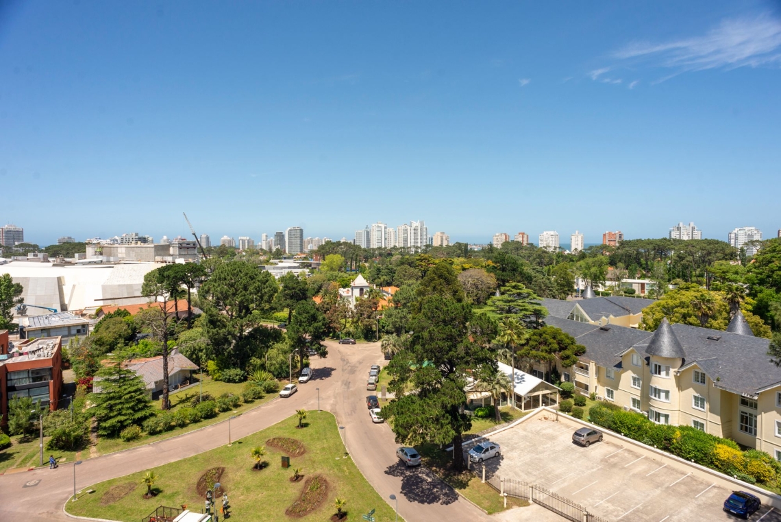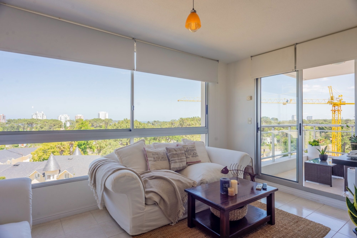 Apartamento situado en la parada 7 de la avenida Roosevelt, a solo unos pasos del Punta Shopping y a pocas cuadras de las playas Mansa y Brava. Este elegante espacio cuenta con 2 dormitorios, uno de ellos en suite, con acceso al balcón, y 2 baños completos. El amplio salón-comedor presenta ventanales que ofrecen una vista panorámica de Punta del Este y acceso al balcón.