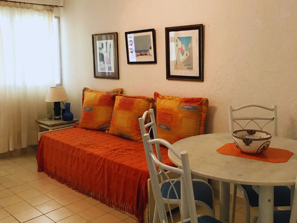 El apartamento se compone además de un baño bien distribuido y cuenta con acceso a un garaje, garantizando comodidad y practicidad para los residentes. Totalmente equipado para acomodar a cuatro personas, se convierte en una elección ideal para parejas con hijos o para aquellos que buscan un espacio confortable durante su temporada en la playa.