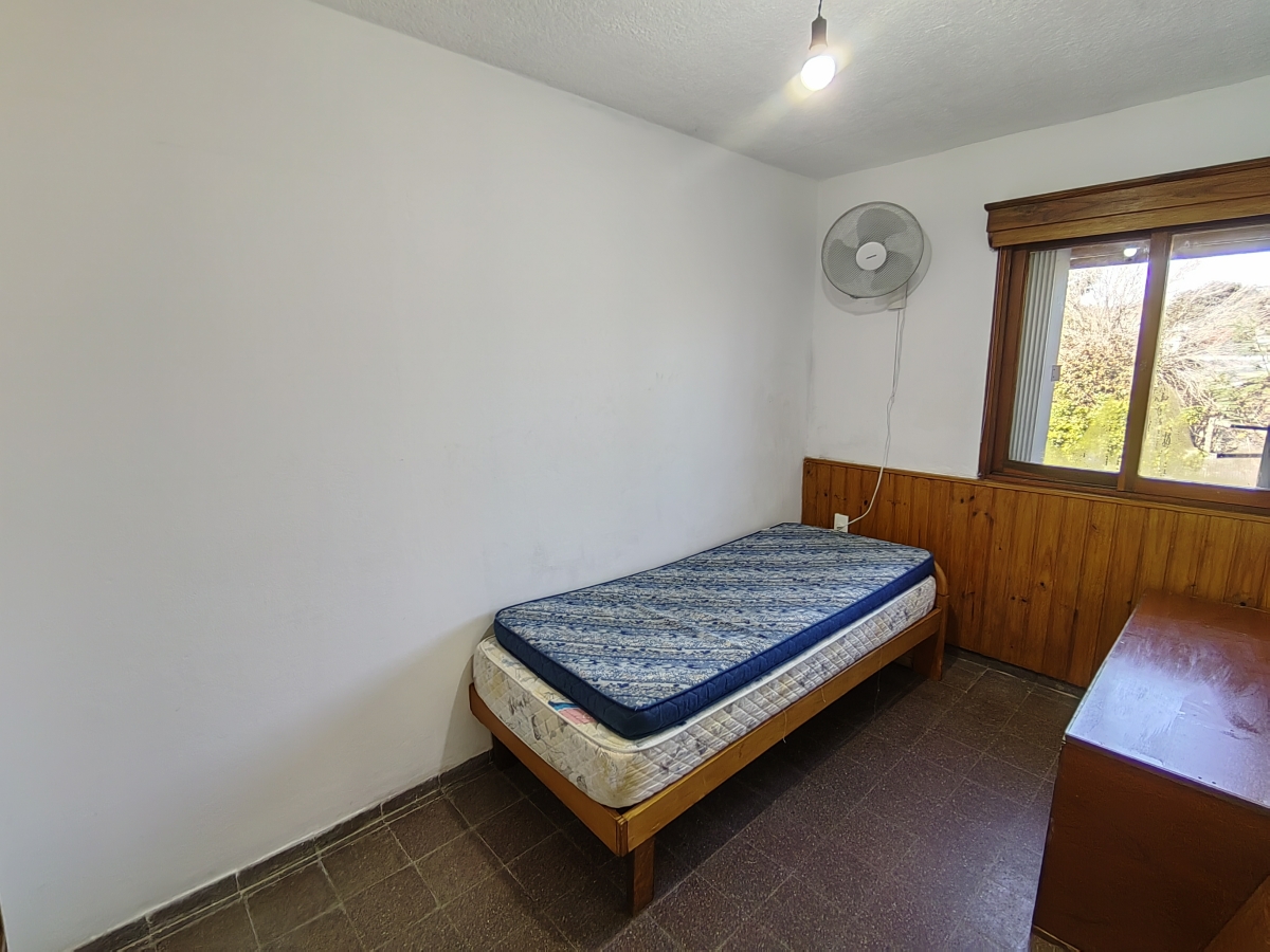 - 2 dormitorios: uno con cama de dos plazas y placard, el otro con cama individual y estante.