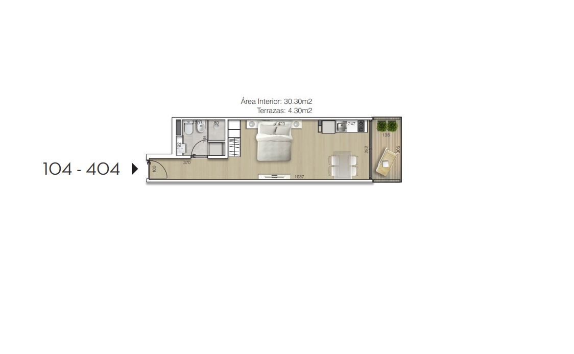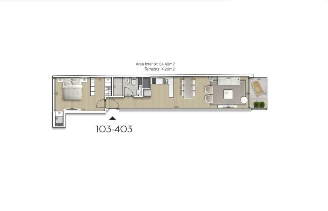103 | 1 DORM | 54,4 | 4,2 | 58,6 | 154.080 |