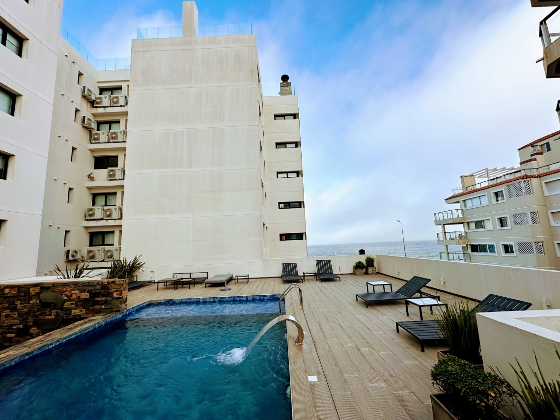 En la exclusiva Península, se encuentra este espectacular apartamento nuevo con vistas deslumbrantes a la playa Brava. Ubicado en un moderno edificio, presentamos en venta una propiedad en estado impecable. Este luminoso apartamento cuenta con 2 amplios dormitorios, uno de ellos con baño en suite y vestidor, además de otro baño completo. El diseño interior se destaca por su concepto abierto, donde el elegante salón se fusiona armoniosamente con una cocina integrada de diseño contemporáneo. Además de todo esto el apartamento cuenta con una cochera techada de cómodo acceso. Disfrute de la brisa marina y las impresionantes vistas desde el amplio balcón que se extiende hacia la playa.