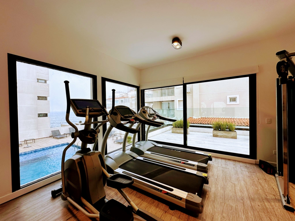 El edificio ofrece una amplia gama de comodidades para el disfrute de sus residentes, incluyendo una piscina exterior con solárium, otra piscina interior climatizada, ambas con vistas panorámicas al mar. Además, cuenta con un lujoso spa, un gimnasio totalmente equipado con tecnología de última generación y una moderna barbacoa. Durante la temporada de verano, se ofrece un servicio de playa exclusivo. La seguridad y conveniencia están garantizadas con servicio de portería las 24 horas, limpieza diaria y hasta un cine privado.