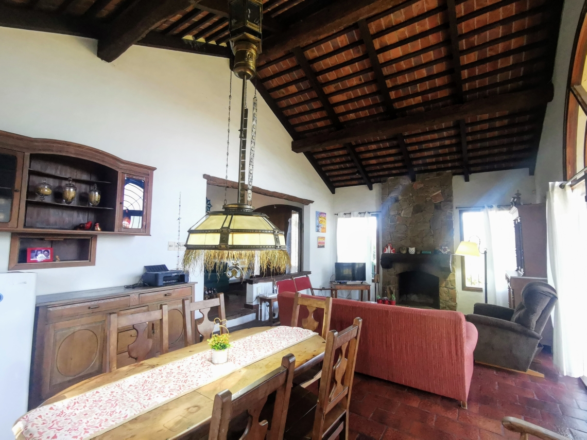 El amplio y luminoso salón comedor es el espacio perfecto para relajarte y disfrutar de momentos inolvidables, con una estufa a leña que te brindará un ambiente acogedor en las noches más frescas. Sus ventanales te conducirán hacia un deck con vista panorámica inigualable.