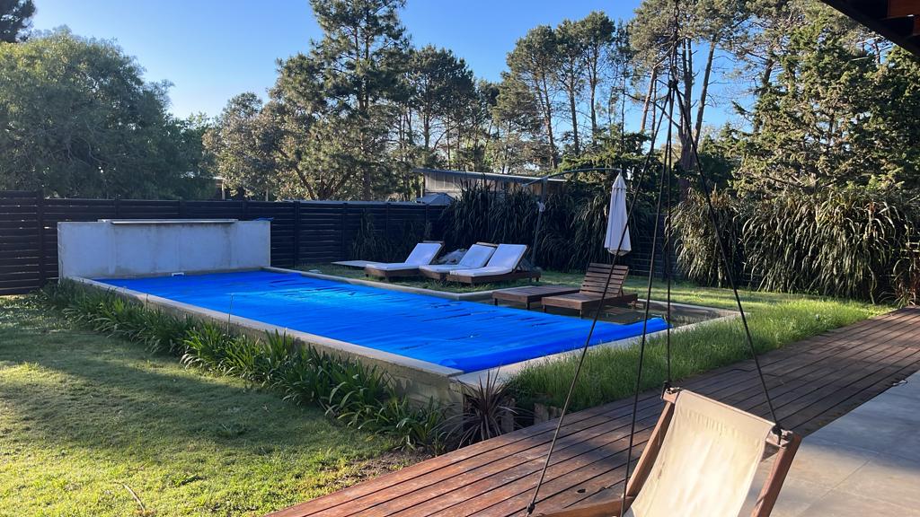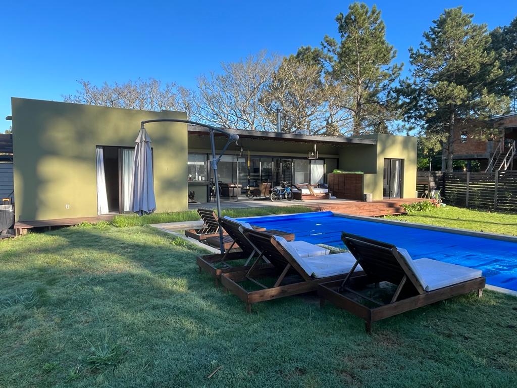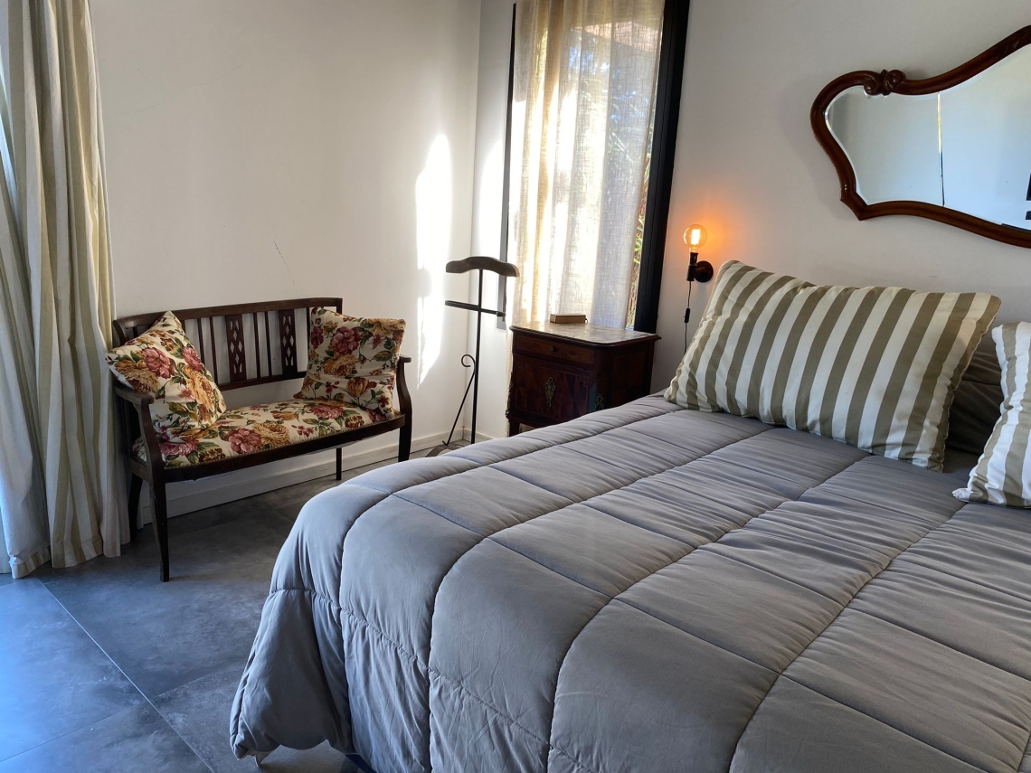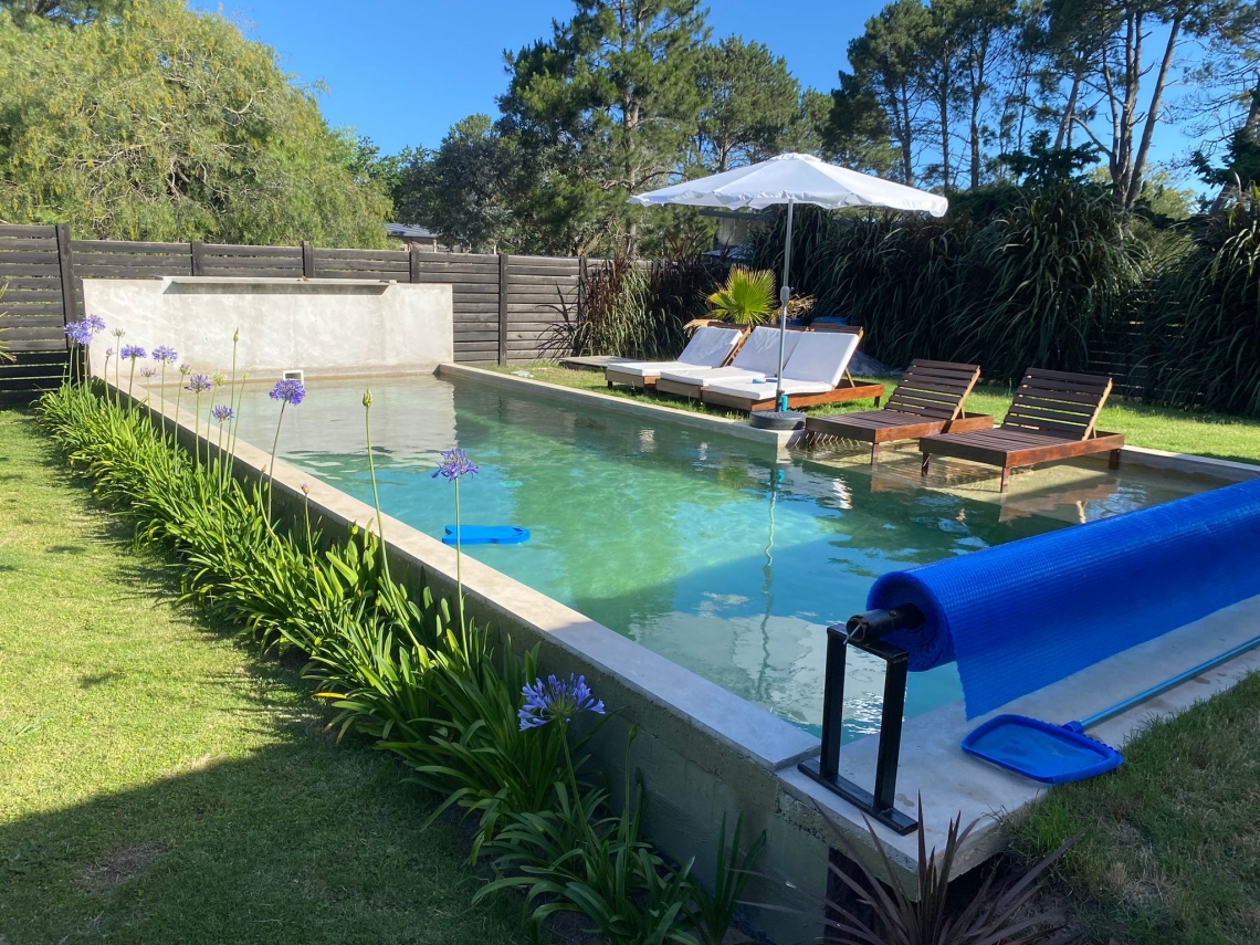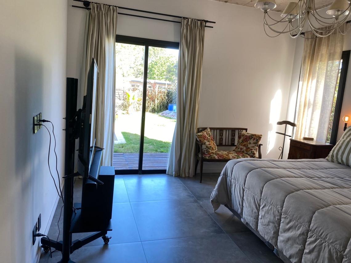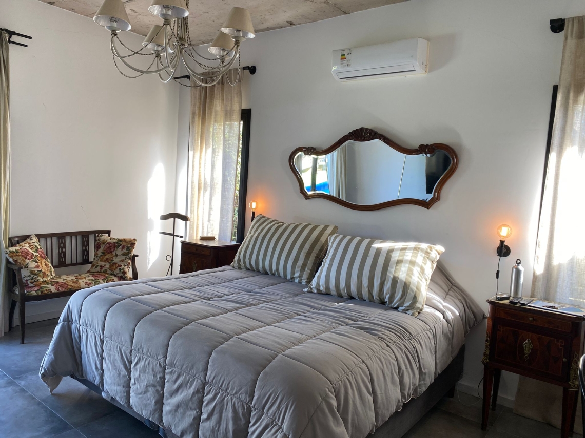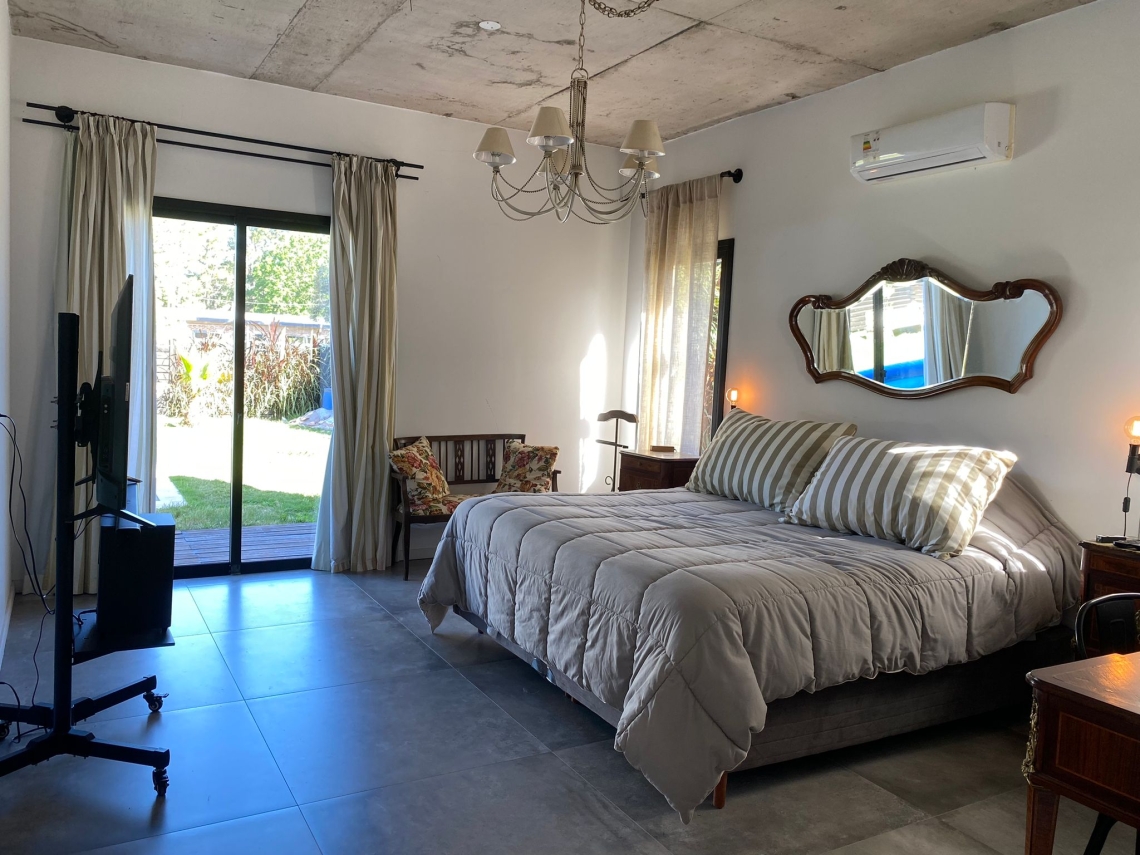 La propiedad cuenta con 3 dormitorios, uno de ellos en suite con vestidor y acceso independiente a la piscina. Además, dispone de 2 baños en total.