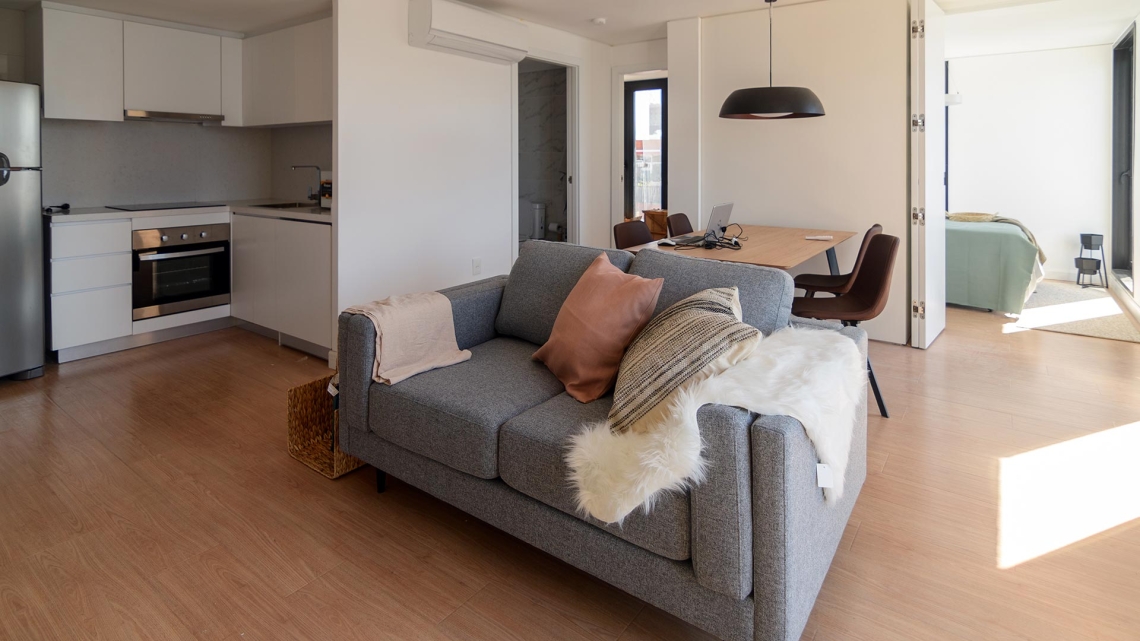Esta unidad se caracteriza por sus detalles de alta calidad, con ambientes luminosos y equipado con aire acondicionado, horno y heladera para una experiencia de vida cómoda y placentera.