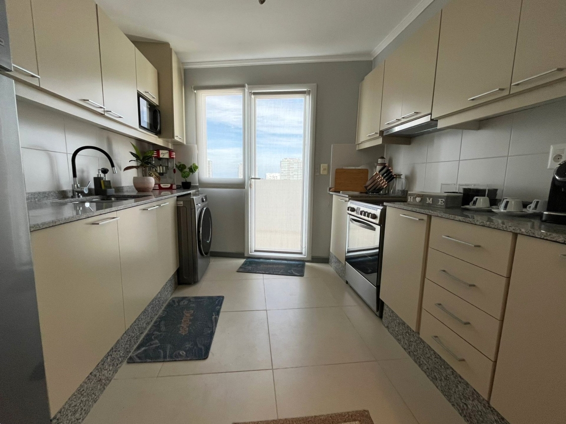 La cocina completa, junto con el living y el comedor, crean un ambiente abierto y acogedor, perfecto para reuniones familiares o cenas con amigos. El living comedor adicional ofrece un espacio extra para relajarse y disfrutar de la comodidad de tu hogar. El Apartamento se vende con muebles listo para disfrutar.