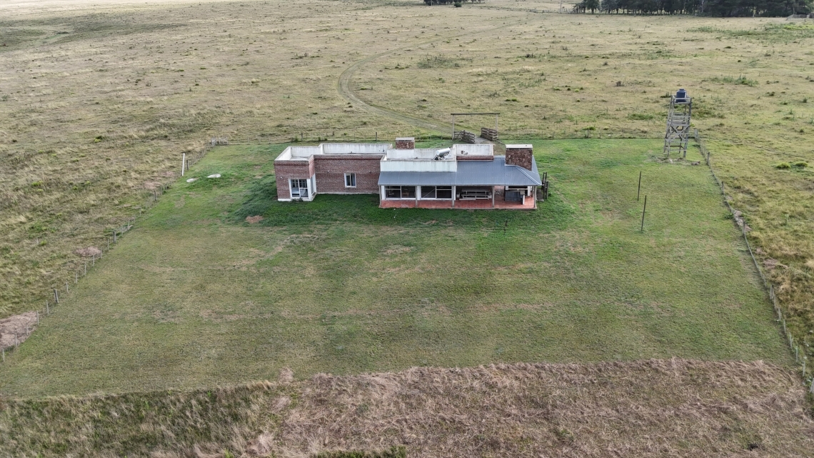 Infraestructura completa: galpón, casa para personal e instalaciones ganaderas.