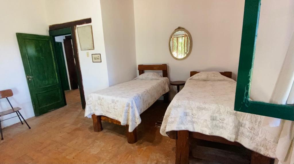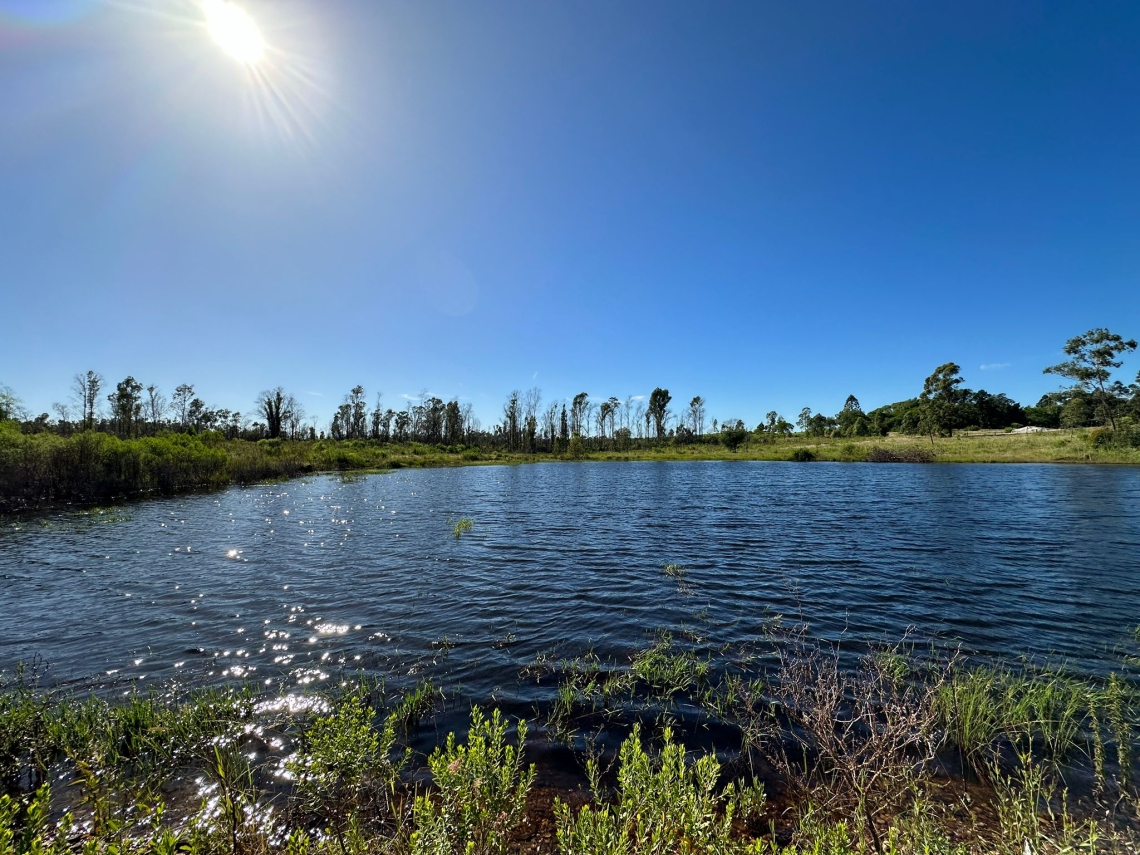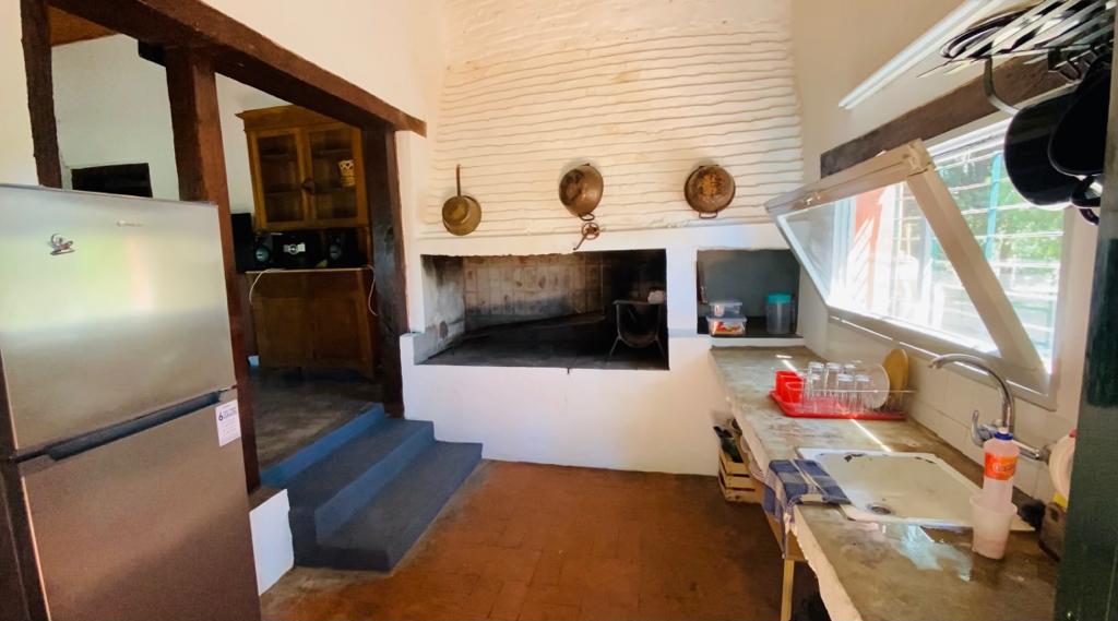 La vivienda principal, compuesta por 3 dormitorios, sala de estar, comedor, cocina y baño, se encuentra estratégicamente ubicada, con un espacioso alero que se asoma hacia uno de los tajamares. Rodeada por un frondoso bosque que alberga diversas especies arbóreas, esta residencia ofrece un entorno natural y sereno.